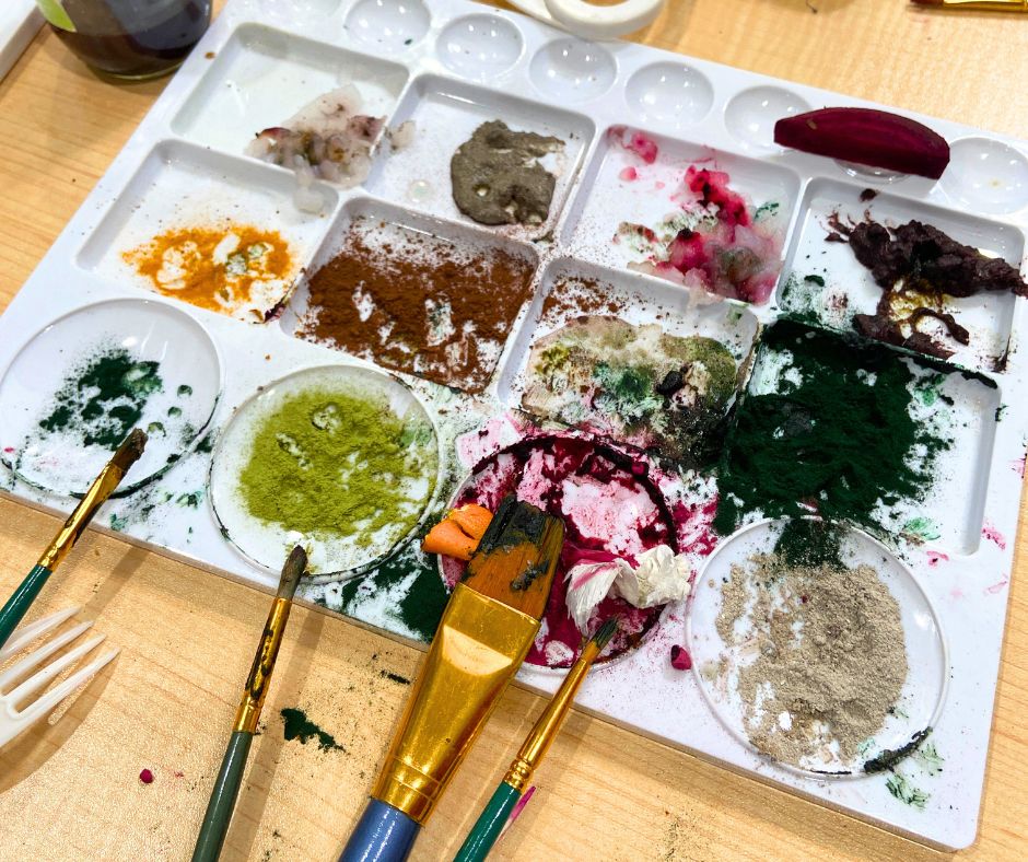 Colours of the Earth emerged in response to a common barrier identified across many arts programs: traditional art materials are often expensive and inaccessible. Mercy was invited to offer a different approach, teaching participants how to create natural pigments using ingredients found in their own kitchens and homes. By making their own art materials, participants developed practical skills and confidence, empowering them to continue creating art at home with their families using materials they already had.