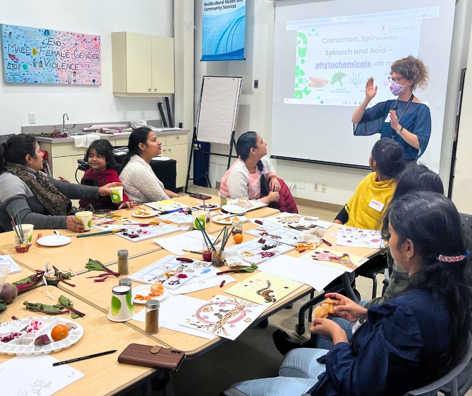 Colours of the Earth became much more than a program. It empowered newcomer women to create art using accessible materials, connect with their families, preserve cultural stories, and discover something new about nutrition and healthy eating. Through making, sharing, and experimenting, participants transformed everyday ingredients into vibrant expressions of home, heritage, and imagination.