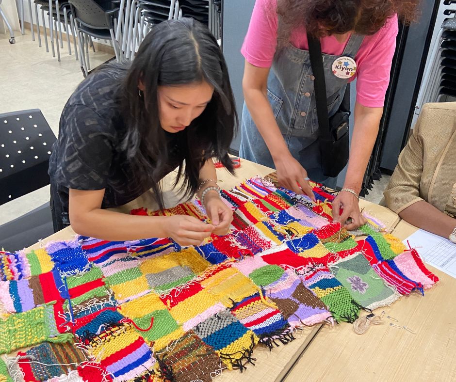 The program also provided a unique space for participants to reclaim past identities. One participant, who helped join the individual pieces into a larger, vibrant tapestry, shared, “I liked the sewing because, back in my home country, I used to be a surgeon.” It was a poignant reminder of how the skills and professional experiences newcomers bring with them can find new, healing expressions in their new homes. “Art is one of the best ways to build connection. You can see what someone has made, appreciate it, and understand something about them without needing words.” says Ebru.